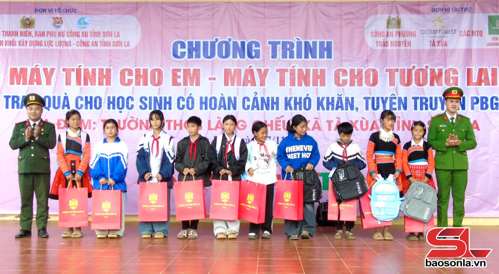 Ngày 7/11, Chi đoàn Khối Xây dựng lực lượng, Công an tỉnh Sơn La phối hợp với Công an phường Thảo Nguyên, Ban Thanh niên, Ban Phụ nữ Công an tỉnh và các nhà tài trợ tổ chức chương trình "Máy tính cho em - Máy tính cho tương lai" tại Trường THCS Làng Chếu, xã Tà Xùa.