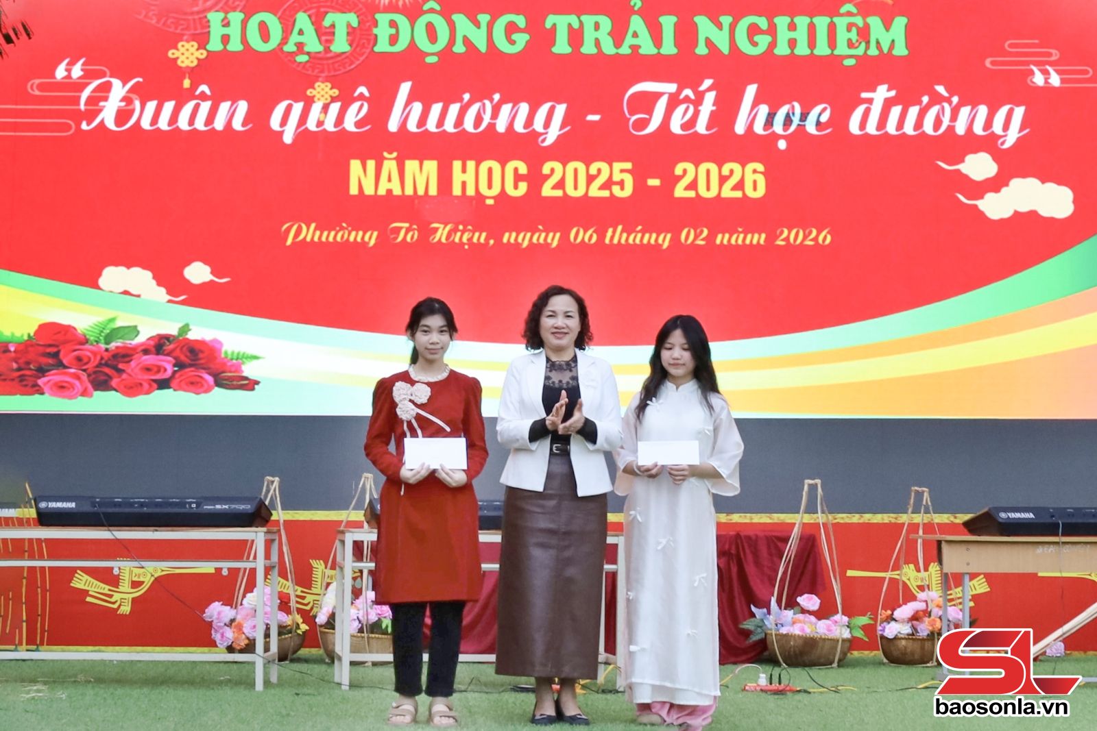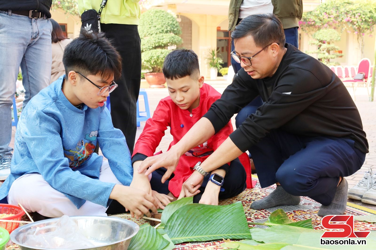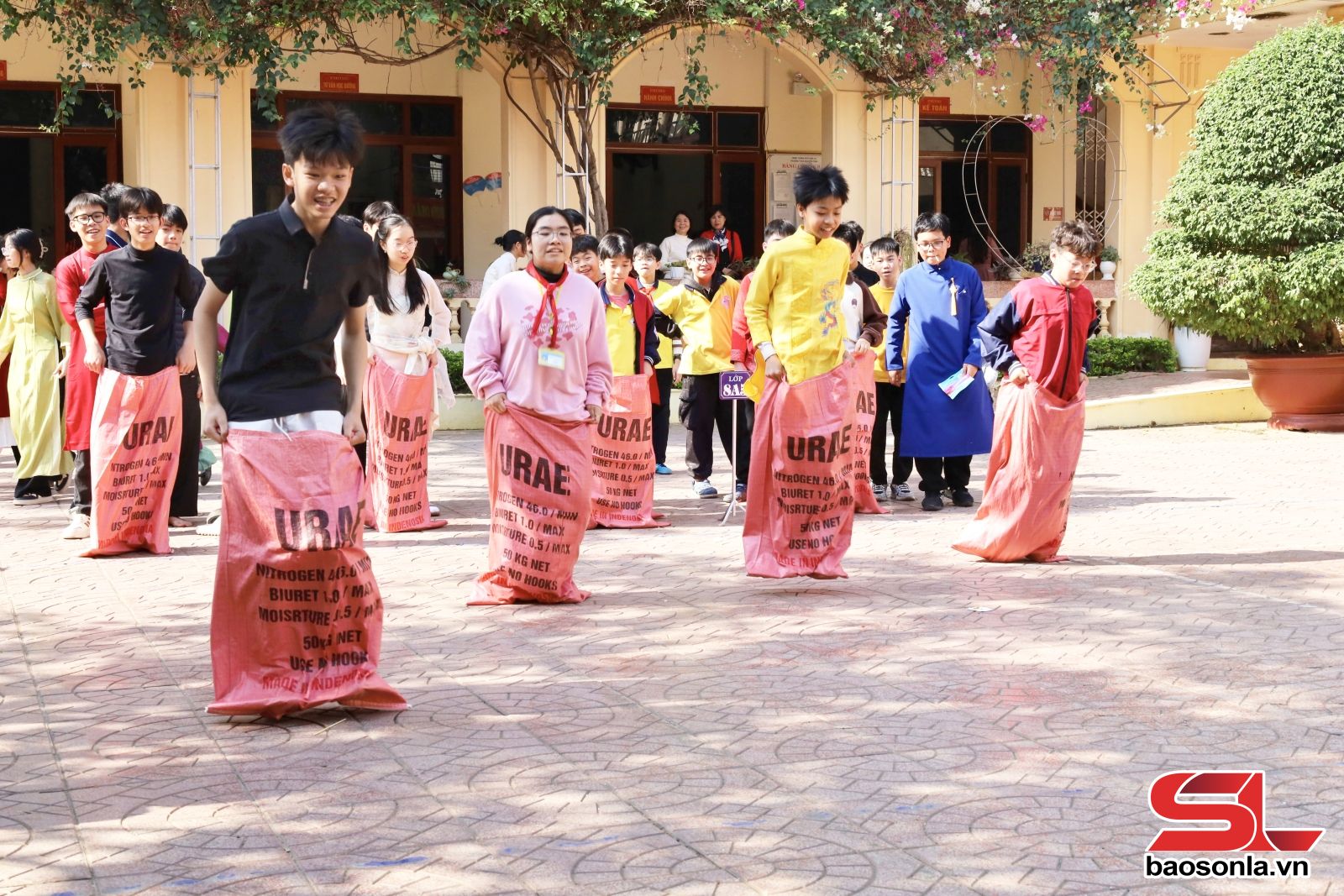 Sau chương trình văn nghệ mang đậm sắc xuân là chuỗi hoạt động trải nghiệm văn hóa Tết cổ truyền đầy hấp dẫn. Ở phần thi “Gói bánh chưng”, các em học sinh hào hứng học hỏi, tự tay gói những chiếc bánh chưng xanh vuông vắn, gửi gắm trong đó niềm tự hào về phong tục truyền thống. Các trò chơi dân gian như: ném còn, nhảy ba bố, gánh gồng qua cầu khỉ,… cũng thu hút đông đảo học sinh tham gia. Bên cạnh đó, hoạt động “Hái hoa dân chủ” với những câu hỏi thú vị về kiến thức lịch sử, văn hóa ngày Tết đã góp phần giúp các em củng cố kiến thức một cách nhẹ nhàng, sinh động.