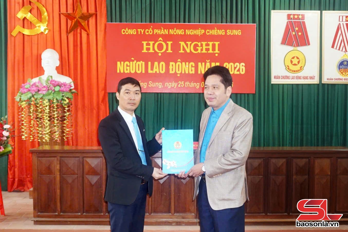 Ngày 25/1/2026, Công ty Cổ phần Nông nghiệp Chiềng Sung tổ chức Hội nghị Người lao động năm 2026. Dự hội nghị, có các đồng chí nguyên là lãnh đạo tỉnh; lãnh đạo Ủy ban MTTQ Việt Nam tỉnh, Liên đoàn Lao động tỉnh.