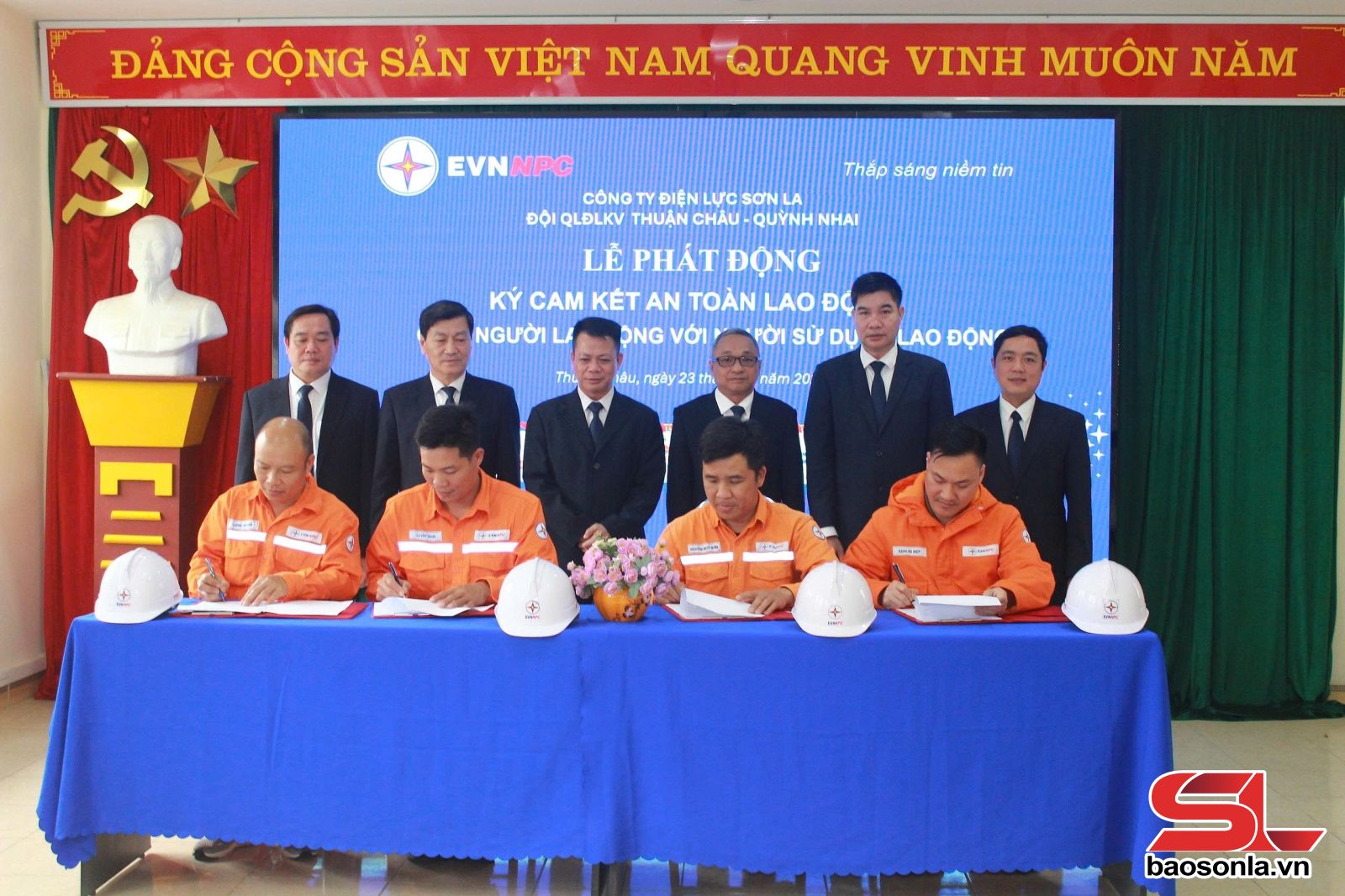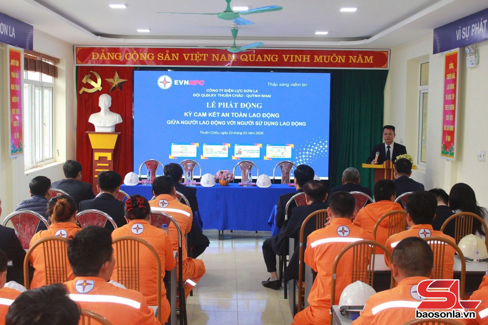Ttừ 23-28/2, Công ty Điện lực Sơn La tổ chức ký cam kết với các Đội quản lý điện lực khu vực về bảo đảm an toàn lao động năm 2026 của người lao động với người sử dụng lao động, khẳng định quyết tâm kiểm soát rủi ro, phòng ngừa tai nạn trong quá trình sản xuất, kinh doanh.