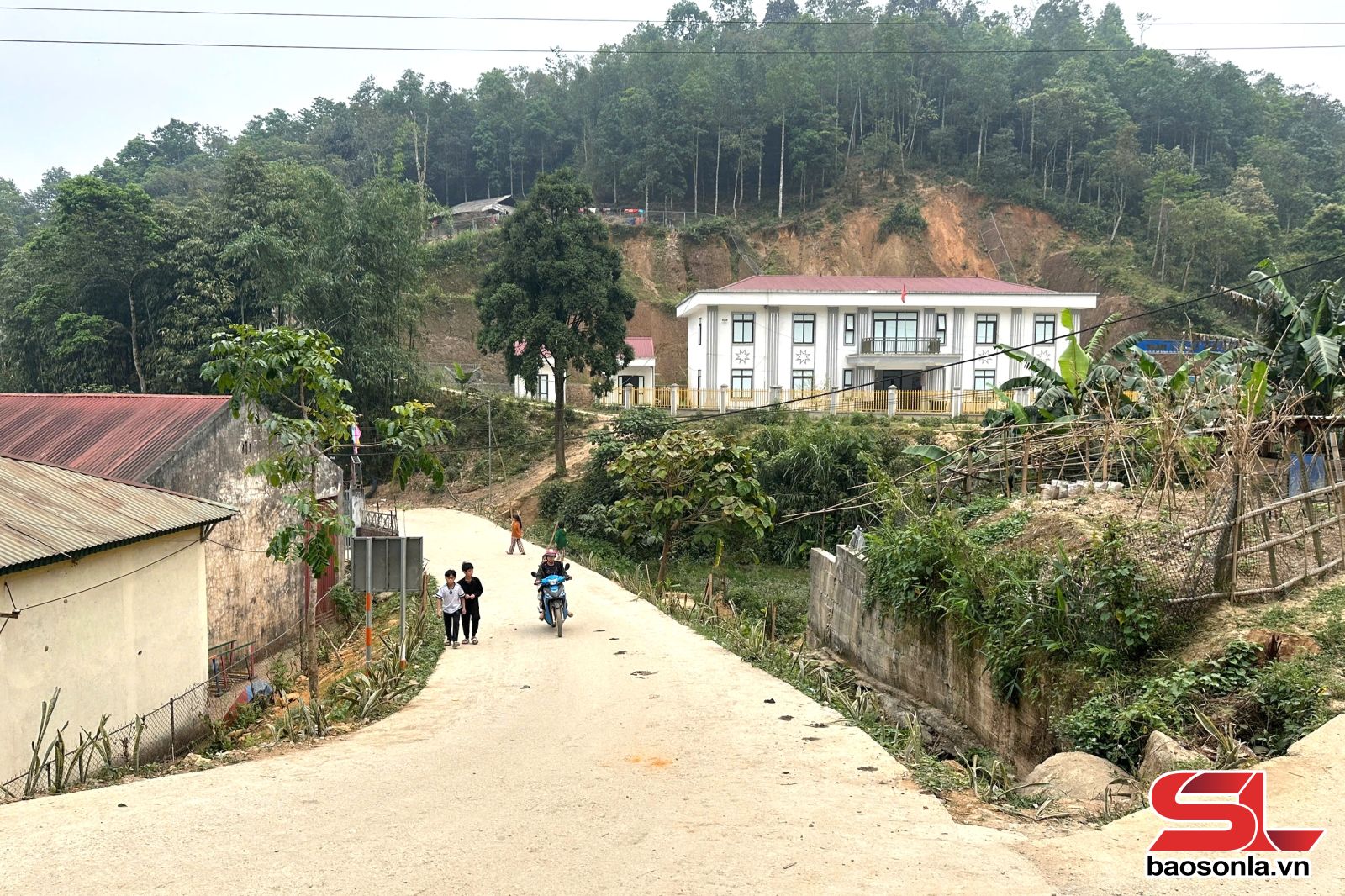 Dù tuyến đường đến trung tâm xã được trải nhựa, nhưng qua nhiều năm do mưa lũ sói mòn, làm nhiều đoạn đường đã xuống cấp, đất đá lởm chởm khó đi. Phải mất hơn 1 tiếng đồng hồ chúng tôi mới đến được trung tâm xã.