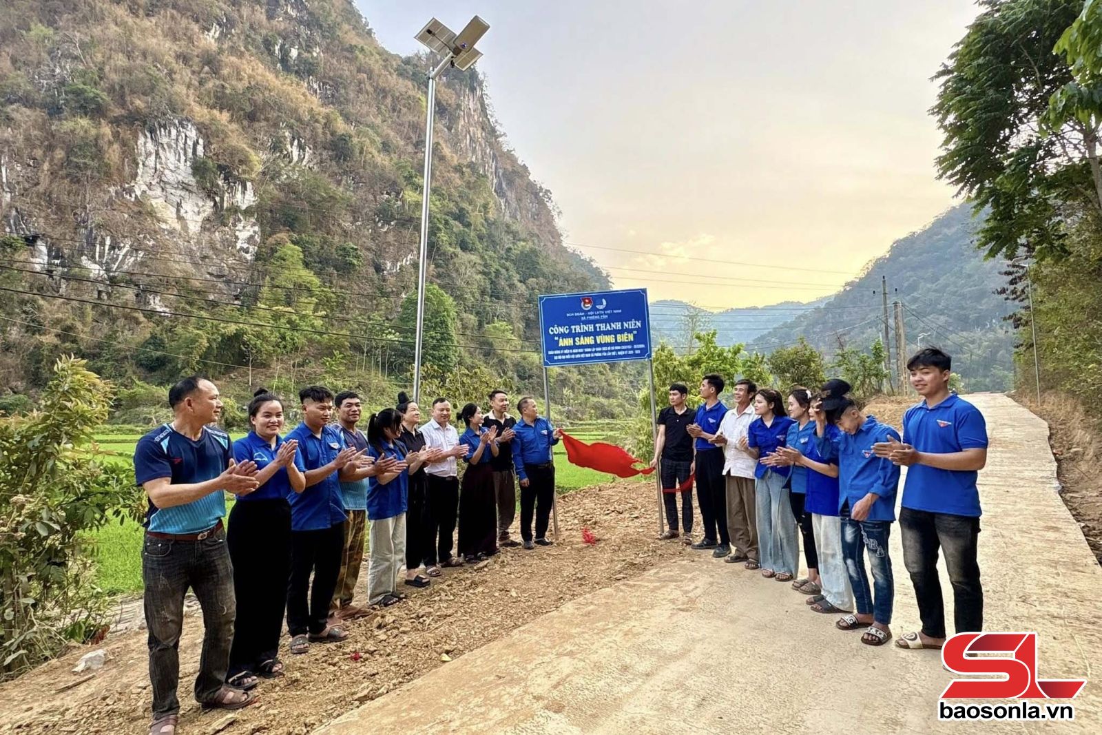ĐVTN xã Phiêng Pằn khánh thành công trình "Ánh sáng vùng biên". Ảnh Hồng Thơi (CTV)