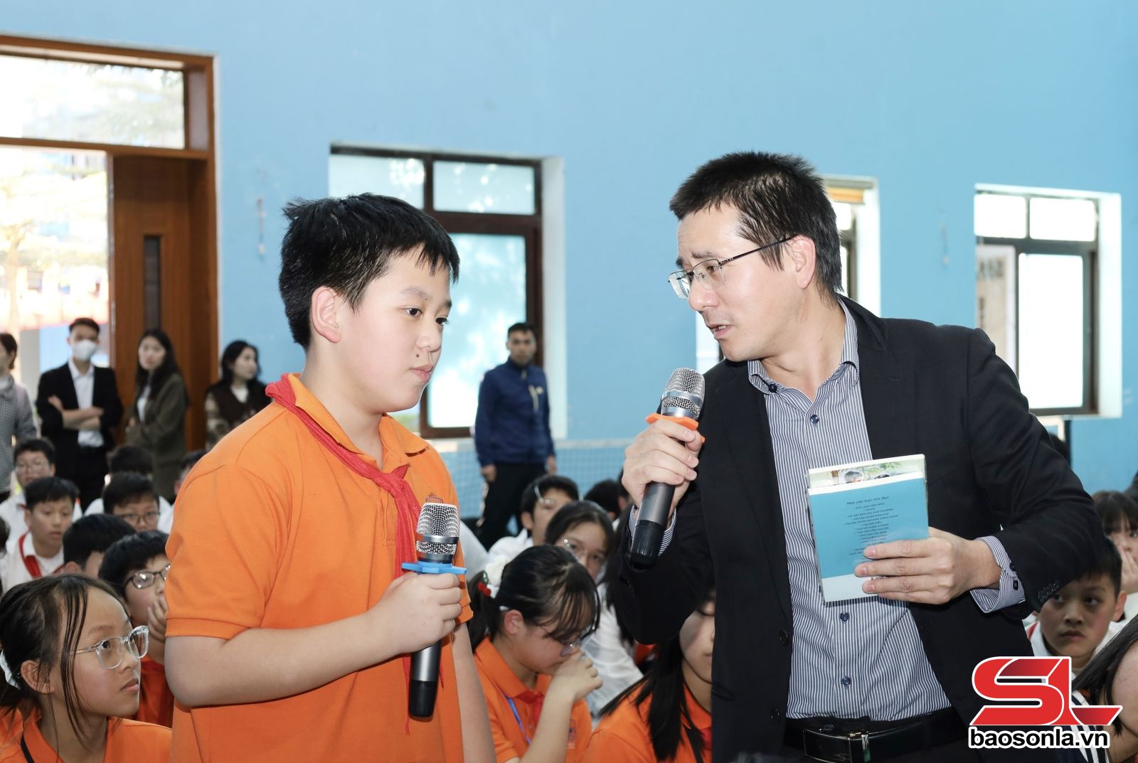 Trong khuôn khổ chương trình, diễn giả Nguyễn Đức Vương đã giao lưu, trao đổi với học sinh về chủ đề “Đọc sách trong thời đại kỹ thuật số”. Thông qua những câu hỏi tương tác, diễn giả giúp các em nâng cao kỹ năng chọn lọc thông tin, nhận diện tin xấu, độc trên không gian mạng và sử dụng hiệu quả các thiết bị công nghệ phục vụ học tập, hình thành thói quen đọc sách chủ động, khoa học.