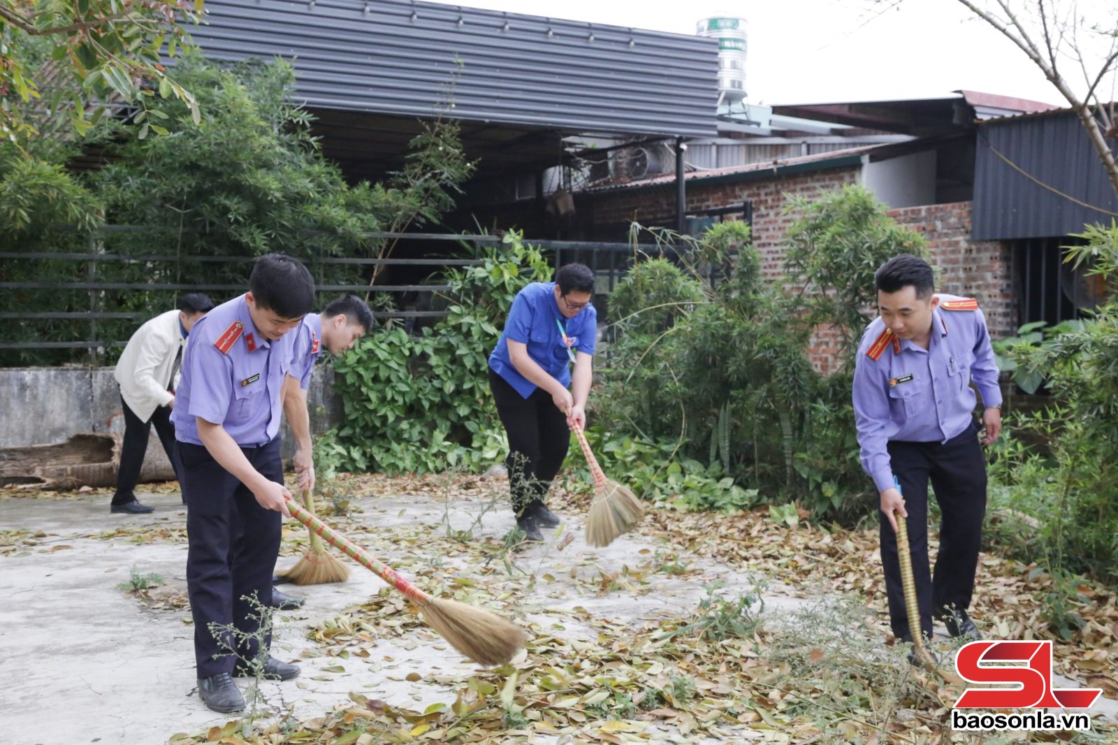 Ngay sau lễ phát động, đoàn viên, thanh niên đã ra quân dọn dẹp vệ sinh môi trường, thu gom rác thải, chỉnh trang khuôn viên Trường Đại học Tây Bắc.