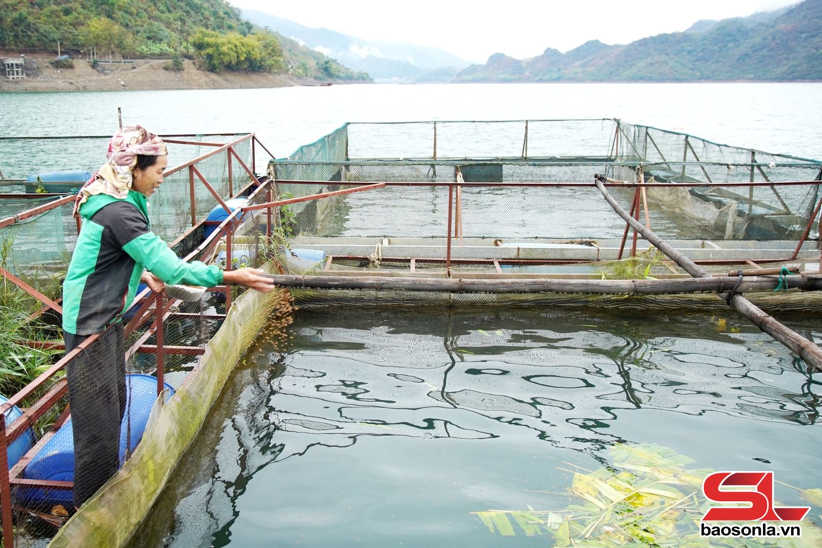 Ông Hoàng Văn Thanh, bản Nà Pục, trước kia là hộ nghèo, thu nhập bấp bênh. Năm 2022, từ Chương trình 1719, gia đình ông được Nhà nước hỗ trợ bò sinh sản, cá giống để tạo dựng sinh kế và được hướng dẫn kỹ thuật chăm sóc vật nuôi, sử dụng phụ phẩm nông nghiệp làm thức ăn chăn nuôi. Ông Thanh chia sẻ: Tận dụng lợi thế lòng hồ sông Đà và sự hỗ trợ của Nhà nước, gia đình đã đầu tư 2 lồng nuôi cá mè, cá trắm cỏ, lăng, chép... sản lượng trung bình đạt 2,5 tấn/năm. Mỗi lồng tôi có thể xuất bán 3 lứa cá/năm, thu nhập từng bước được cải thiện.