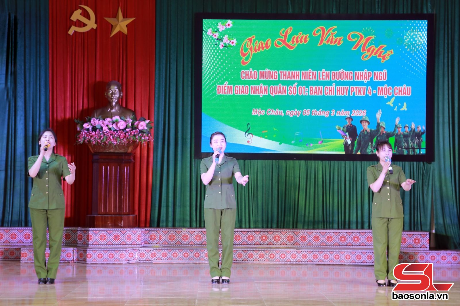 Chương trình giao lưu văn nghệ do các diễn viên đến từ Trung tâm Dịch vụ tổng hợp phường Mộc Châu, Mộc Sơn biểu diễn, với nhiều tiết mục hát, múa ca ngợi Đảng quang vinh, Bác Hồ kính yêu, tình yêu quê hương đất nước, tình đoàn kết quân dân, truyền thống vẻ vang của Quân đội nhân dân Việt Nam anh hùng; ca ngợi hình ảnh người chiến sĩ và khát vọng của tuổi trẻ. Các tiết mục đã đem đến không khí vui tươi, phấn khởi, động viên các tân binh lên đường nhập ngũ phát huy truyền thống cách mạng, phấn đấu rèn luyện, cống hiến cho sự nghiệp xây dựng và bảo vệ Tổ quốc.