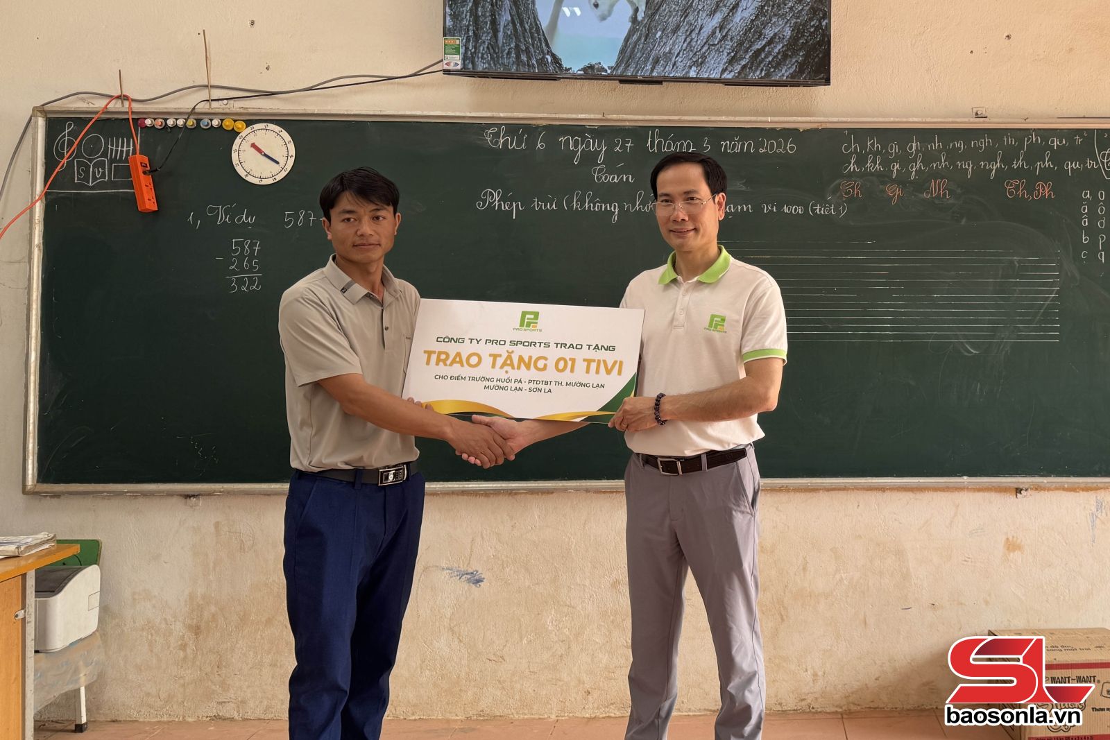 Cũng tại chương trình, Công ty Pro Sports (Hà Nội) cũng đã trao tặng nhu yếu phẩm như mắm, muối, mì tôm cho các gia đình có hoàn cảnh khó khăn; đồng thời trao tặng 27 suất học bổng với tổng trị giá 81 triệu đồng và những bộ đồng phục mới cho các em học sinh. Đặc biệt, việc trang bị tivi hiện đại tại lớp học điểm trường Tiểu học đã trở thành “cánh cửa” mở ra kho tàng tri thức mới, hỗ trợ đắc lực cho công tác giảng dạy của các thầy cô giáo cắm bản.