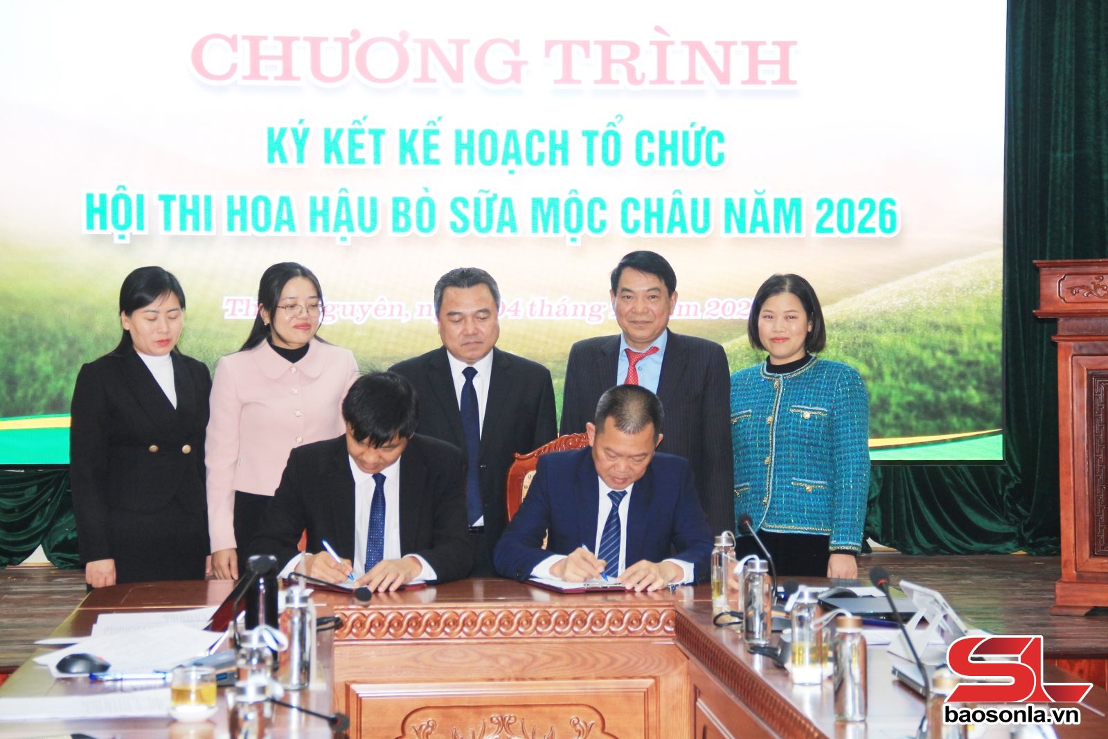 Hai bên đã thống nhất ký kết thực hiện kế hoạch phối hợp tổ chức Hội thi Hoa hậu bò sữa Mộc Châu năm 2026 gồm các nội dung, hoạt động chính và hoạt động bên lề hội thi.