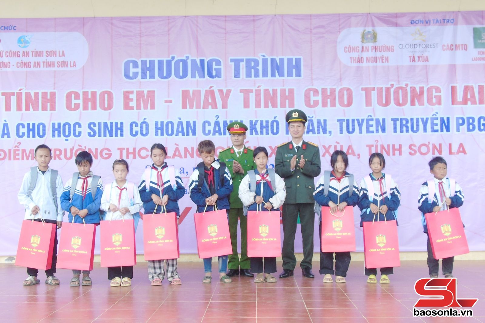 Cùng đoàn công tác của Chi đoàn Khối Xây dựng lực lượng, Ban Thanh niên, Ban Phụ nữ, Công an tỉnh và Công an phường Thảo Nguyên đến xã Tà Xùa thực hiện Chương trình “Máy tính cho em - Máy tính cho tương lai”, chúng tôi cảm nhận rõ hơn tình cảm của cán bộ, chiến sĩ Công an dành cho học sinh vùng cao. Từ quảng trường Tây Bắc, phường Tô Hiệu, vượt gần 120 km đường đèo dốc quanh co, hiểm trở, chúng tôi đến được Trường THCS Làng Chếu. Ngôi trường bình yên nằm giữa núi rừng với phần lớn học sinh là con em đồng bào dân tộc Mông. Tại đây, đoàn trao hơn 1.200 suất quà, 10 bộ máy tính, tổng trị giá trên 140 triệu đồng cho học sinh của điểm trường. Nhìn những ánh mắt trẻ thơ háo hức, nụ cười rạng rỡ khi nhận những phần quà, chúng tôi quên cả chặng đường dài, cảm nhận rõ ý nghĩa của chương trình, niềm tin về thế giới tri thức mở ra cho các em từ những chiếc máy tính, về những điều tốt đẹp trong tương lai của những học trò vùng cao.