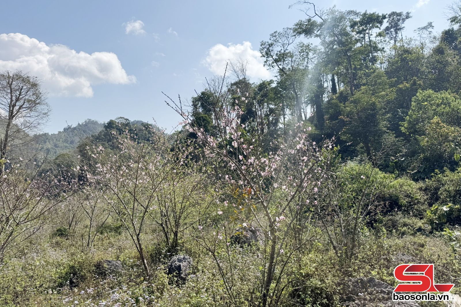 Từ trung tâm xã Chiềng Hặc, mất gần 2 giờ đồng hồ vượt qua cung đường gần 30 km với những con dốc quanh co, uốn lượn, nhiều đoạn đường đất trơn trượt, chúng tôi có mặt tại bản Ôn Ốc. Thời điểm này, Ôn Ốc hiện ra như một bức tranh thủy mặc với màu xanh của những cánh rừng, chấm phá bởi màu hồng của những cây đào rừng bung nở, gọi mùa xuân về.