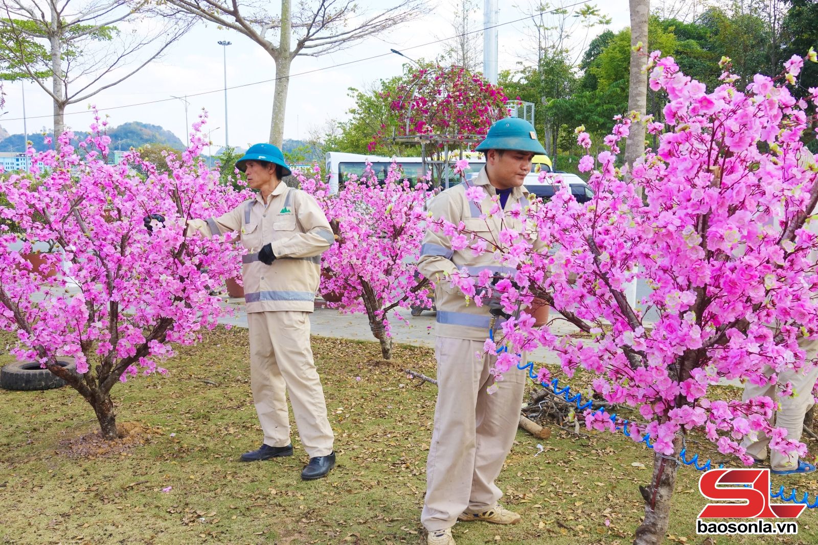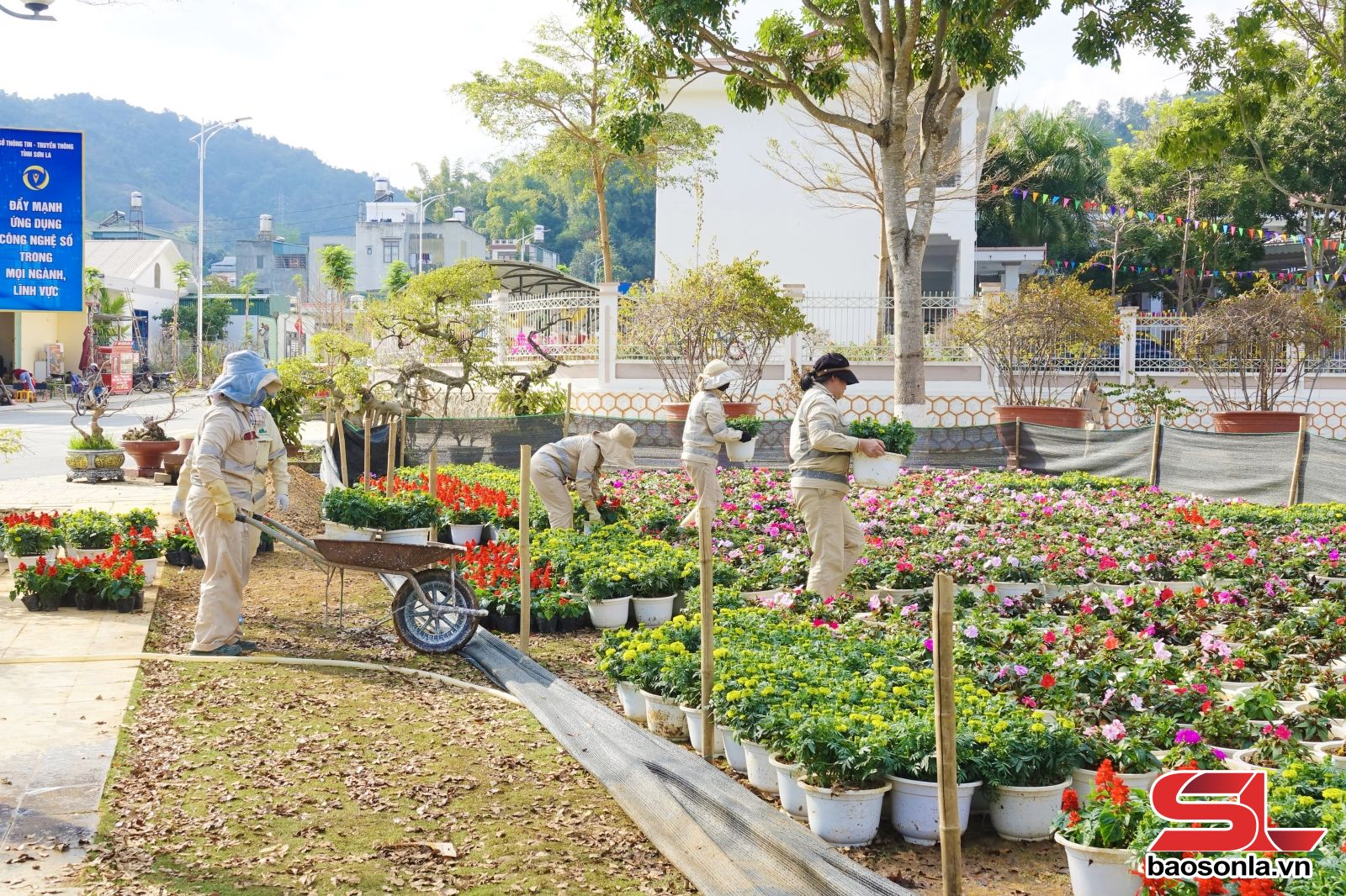 Trên các tuyến phố của các phường Tô Hiệu, Chiềng Cơi, Chiềng Sinh và Chiềng An, từng tốp công nhân Công ty Cổ phần Môi trường và Dịch vụ đô thị Sơn La miệt mài cắt tỉa cây xanh, trồng mới hoa tại các bồn, chậu cảnh quan; lắp đặt hệ thống chiếu sáng, trang trí đèn led, tạo diện mạo tươi mới, đồng bộ cho đô thị trong dịp Tết.
