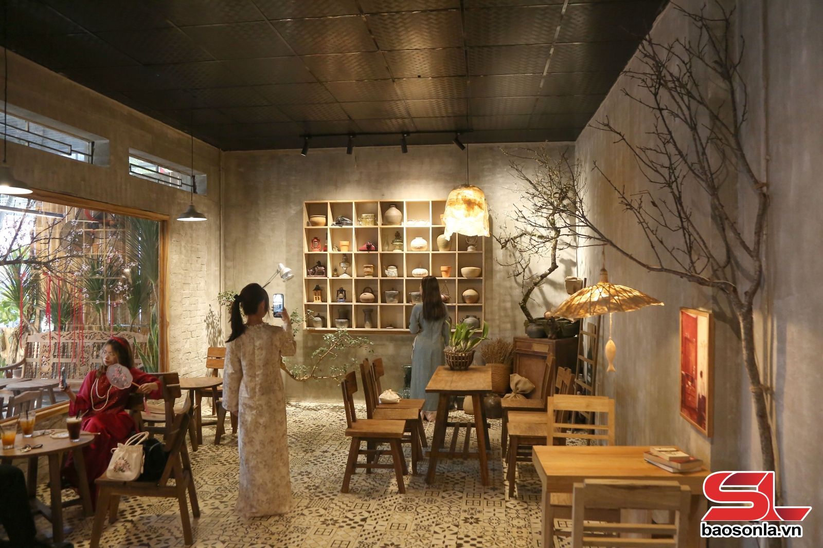 Phong trào chụp ảnh Tết còn hiện diện rõ trong đời sống thường ngày, nắm bắt xu hướng chụp ảnh của giới trẻ, nhiều quán cà phê được trang trí theo chủ đề Tết xưa, tái hiện không gian sinh hoạt truyền thống của gia đình Việt. Những vật dụng quen thuộc như bàn ghế gỗ, radio cũ, tranh dân gian, câu đối đỏ, mâm ngũ quả, bánh chưng được sắp đặt gọn gàng, tạo phông nền phù hợp cho việc chụp ảnh.