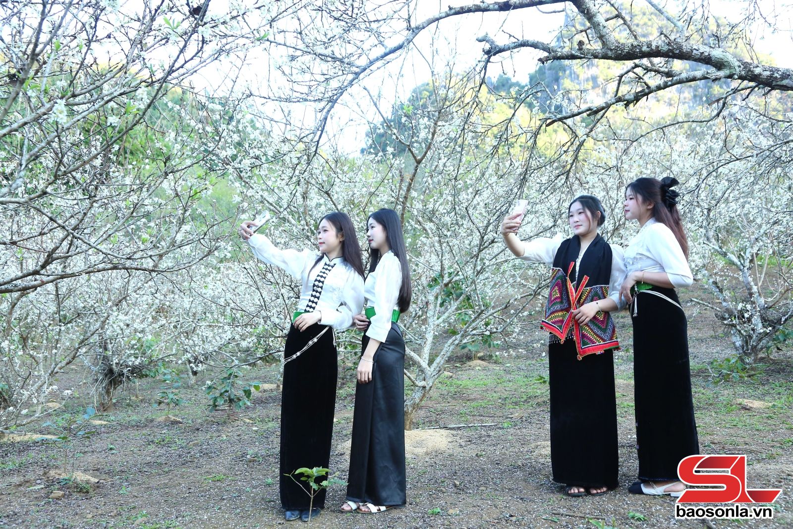 Khu vực ven phường Chiềng Cơi, nơi có nhiều vườn mận đang vào mùa nở hoa, cũng là noi nhiều bạn trẻ lựa chọn để chụp ảnh. Những ngày cuối năm, hoa mận bung nở trắng xóa, tạo nên khung cảnh nên thơ, thu hút đông người dân và du khách đến tham quan, chụp ảnh. Các nhóm bạn trẻ, gia đình thường lựa chọn áo dài truyền thống, áo dài cách tân hoặc trang phục dân tộc Thái, Mông, phù hợp với không gian vườn cây, cảnh sắc vùng cao.