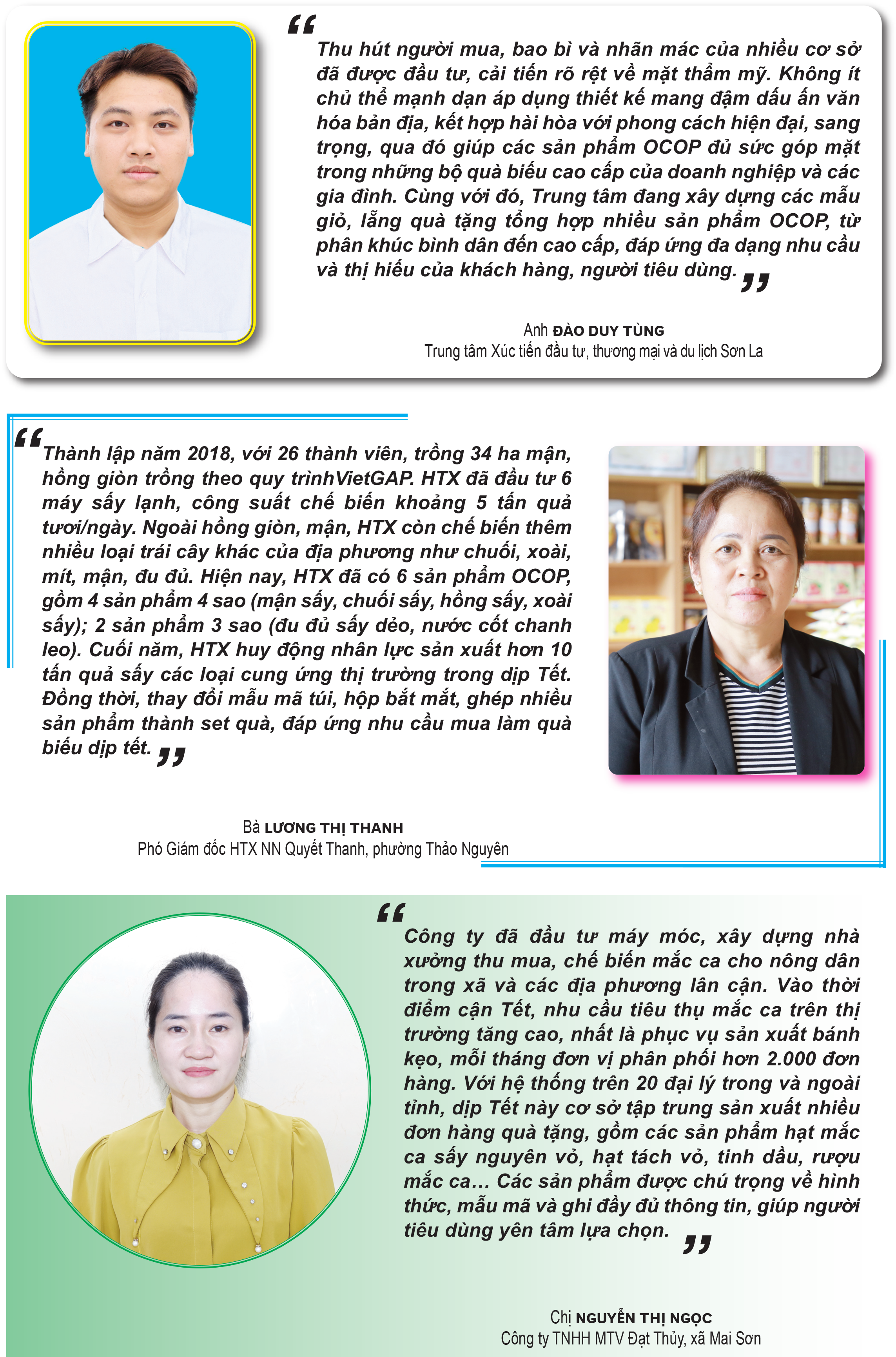 Vào thời điểm này, nhu cầu tiêu thụ các sản phẩm OCOP tăng mạnh, để đáp ứng thị trường, các đơn vị và chủ thể có sản phẩm OCOP trên địa bàn đang đẩy mạnh sản xuất, chủ động nguồn hàng, đồng thời tăng cường nhân công nhằm bảo đảm tiến độ giao hàng. Bên cạnh đó, nhiều gian hàng, hội chợ OCOP được tổ chức, giúp người tiêu dùng thuận tiện tiếp cận, so sánh và lựa chọn sản phẩm địa phương làm quà biếu. Các doanh nghiệp, HTX cũng mở rộng hệ thống phân phối qua đại lý và đẩy mạnh bán hàng trực tuyến, nhờ đó sản lượng tiêu thụ tăng từ 25-40% so với thời điểm trước Tết.