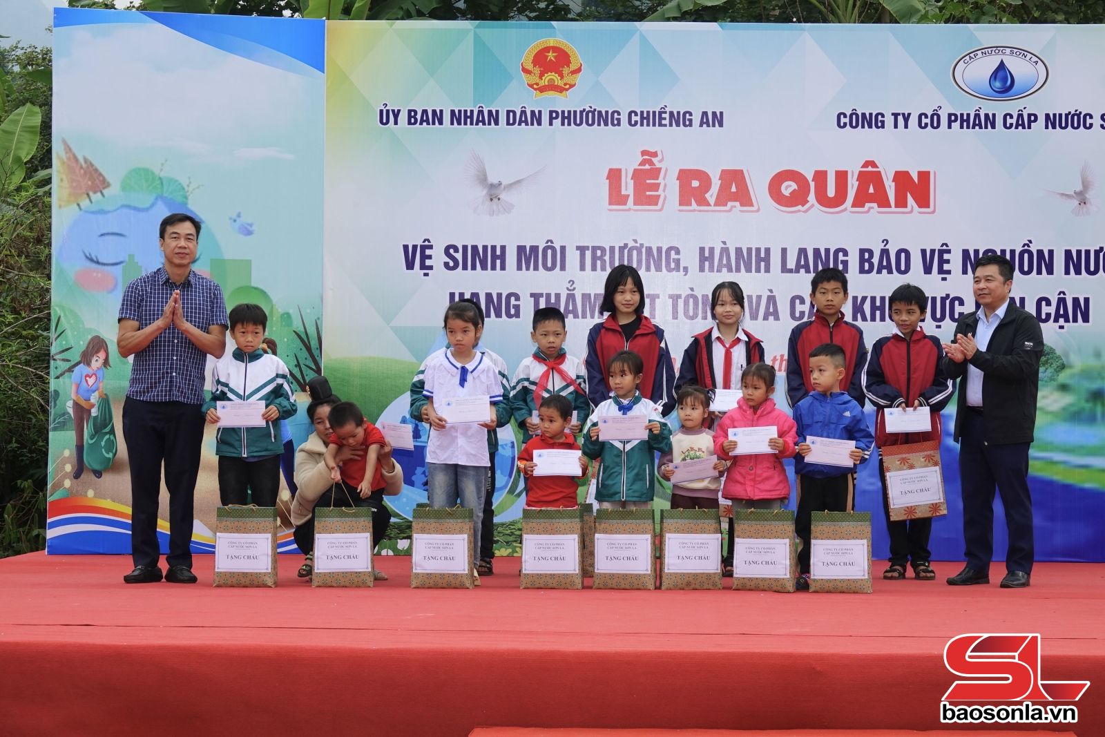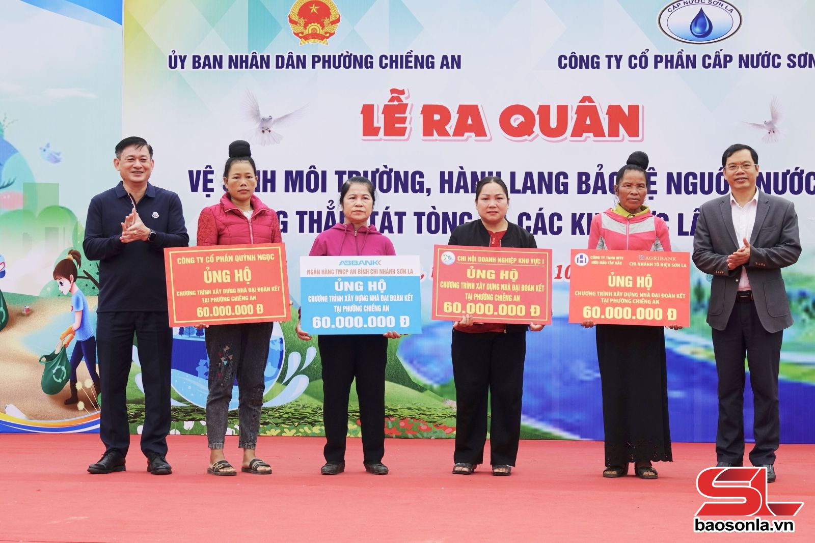 Nhân dịp này, các doanh nghiệp hỗ trợ phường Chiềng An 240 triệu đồng xây dựng nhà đại đoàn kết cho hộ nghèo; tặng 15 suất quà cho các em học sinh có hoàn cảnh khó khăn trên địa bàn phường, trị giá 700 nghìn đồng/suất.