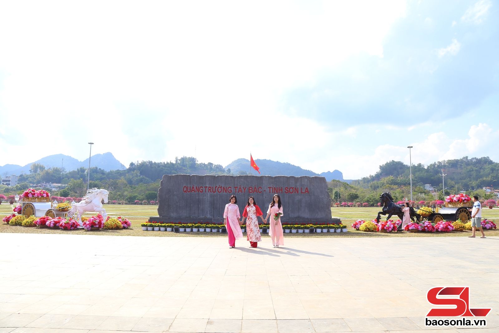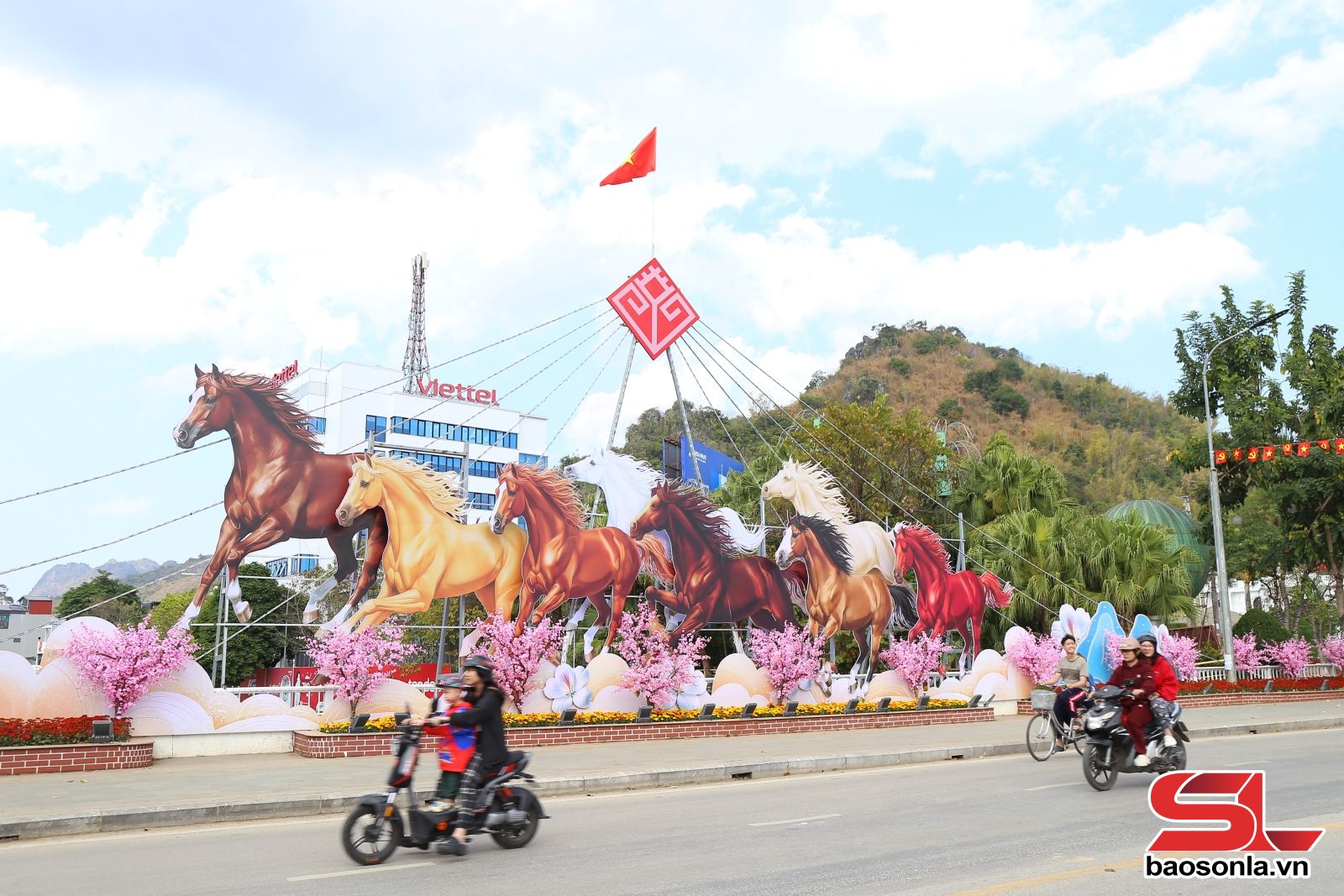 Tại khu vực cầu Trắng, cụm hình ảnh “Mã đáo thành công” dài khoảng 20 mét, cao 3 mét, được Công ty Cổ phần Môi trường và Dịch vụ đô thị Sơn La thiết kế sinh động, tạo điểm nhấn nổi bật dịp năm mới. Hình ảnh 8 chú ngựa phi nước đại truyền tải thông điệp về sức mạnh, ý chí vươn lên và tinh thần đoàn kết của nhân dân các dân tộc trong tỉnh.
