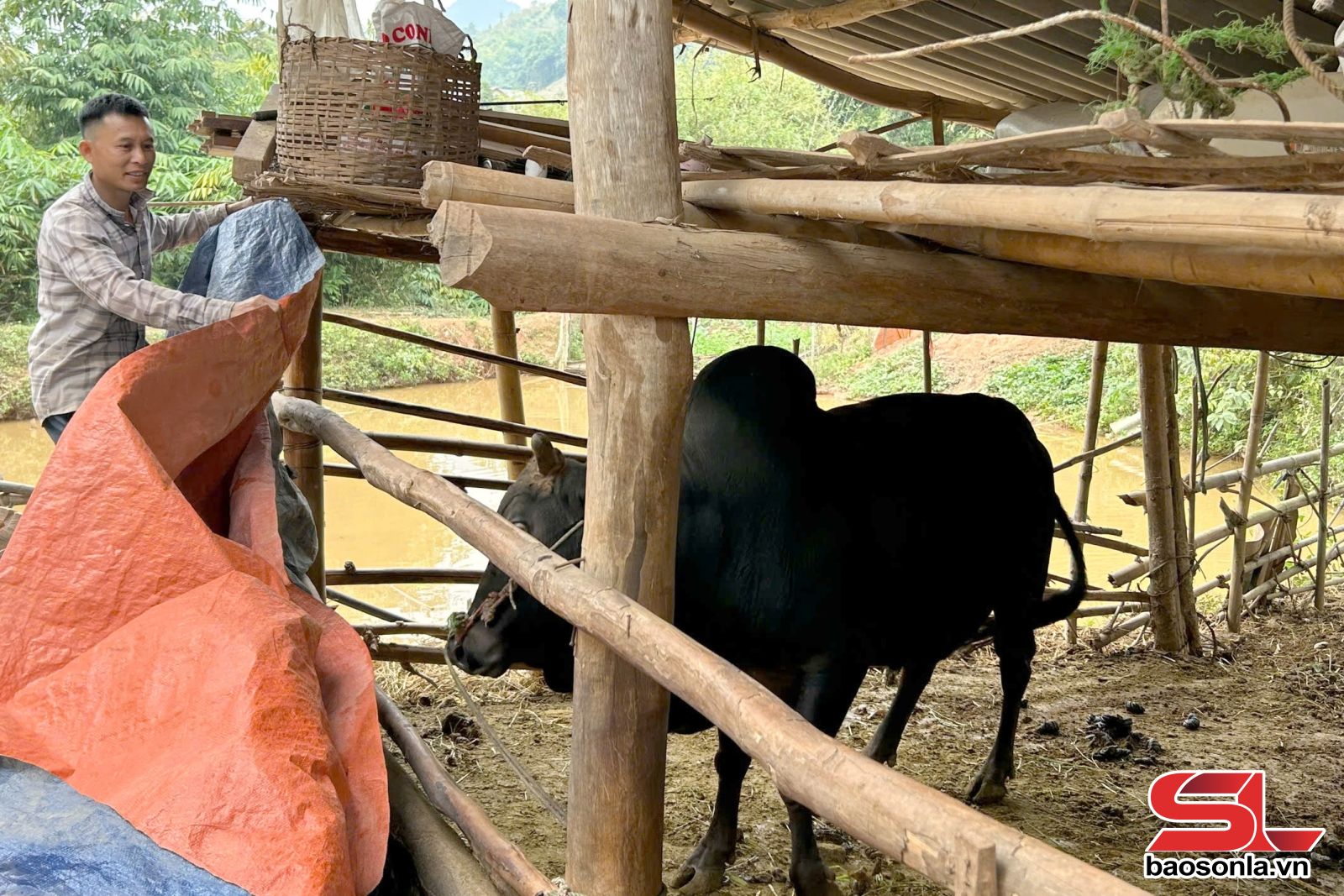 Còn tại bản Nuống Há, xã Mường Khiêng có130 con trâu, bò; 130 con dê; gần 40 con lợn; gần 1.750 con gia cầm. Ban quản lý bản đã phối hợp với các tổ chức, đoàn thể thường xuyên tuyên truyền, nhắc nhở bà con thực hiện các biện pháp phòng, chống rét cho đàn vật nuôi. Đồng chí Bạc Cầm Diện, Bí thư chi bộ, Trưởng bản, cho biết: Qua nắm bắt thông tin thời tiết chuẩn bị có rét đậm, rét hại, Ban quản lý bản đã đi kiểm tra việc thực hiện các biện pháp phòng chống rét cho đàn vật nuôi của các hộ gia đình trong bản. Qua kiểm tra, nhận thấy, bà con đã che chắn chuồng nuôi nhốt gia súc, gia cầm cẩn thận. Các hộ còn tận dụng rơm khô làm thức ăn khô và trồng thêm cỏ voi, làm thức cho gia súc.