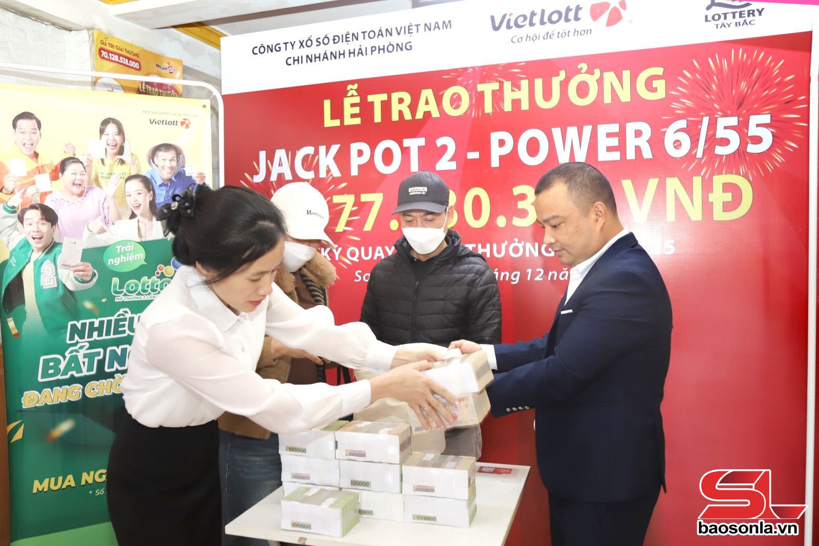 Ngày 5/1, Công ty Xổ số Điện toán Việt Nam (Vietlott) - Chi nhánh Hải Phòng đã tiến hành trao thưởng giải Jackpot Jackpot 2 – Power 6/55 cho khách hàng may mắn tại tỉnh Sơn La với giải thưởng trị giá hơn 4,1 tỷ đồng.