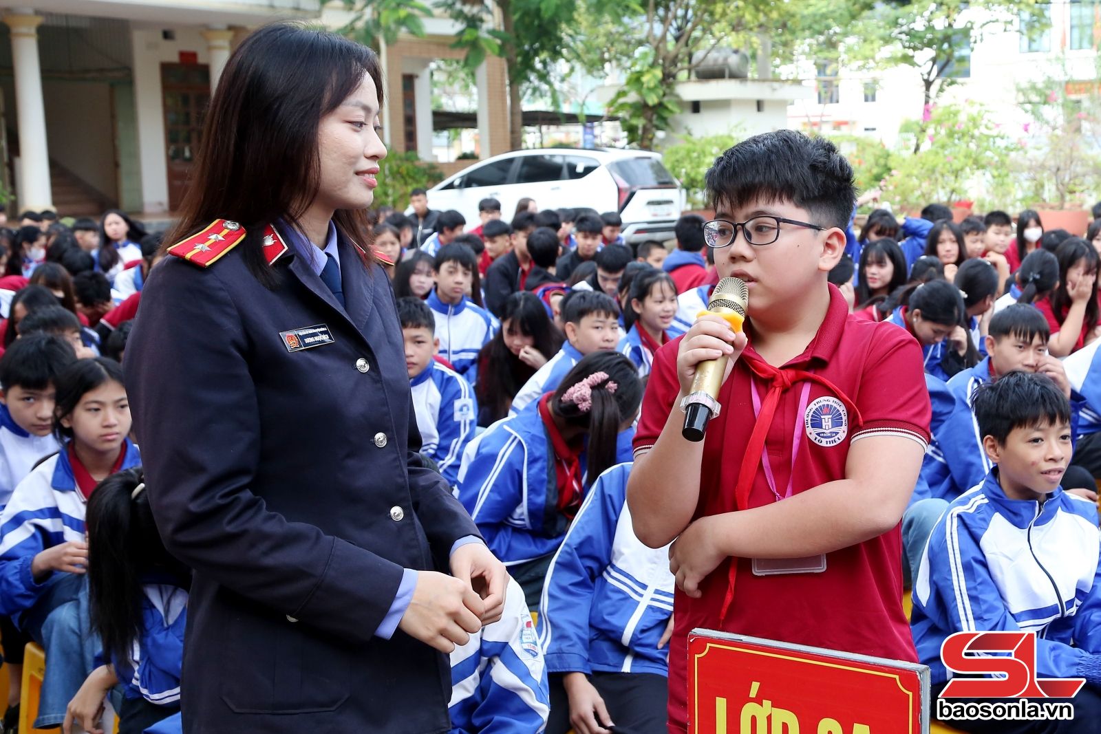 Chương trình diễn ra sôi nổi với phần trao đổi lý thuyết kết hợp tiểu phẩm tuyên truyền và cuộc thi “Rung chuông vàng”, các em học sinh hào hứng tham gia trả lời các câu hỏi trắc nghiệm về kiến thức pháp luật phòng, chống ma túy.