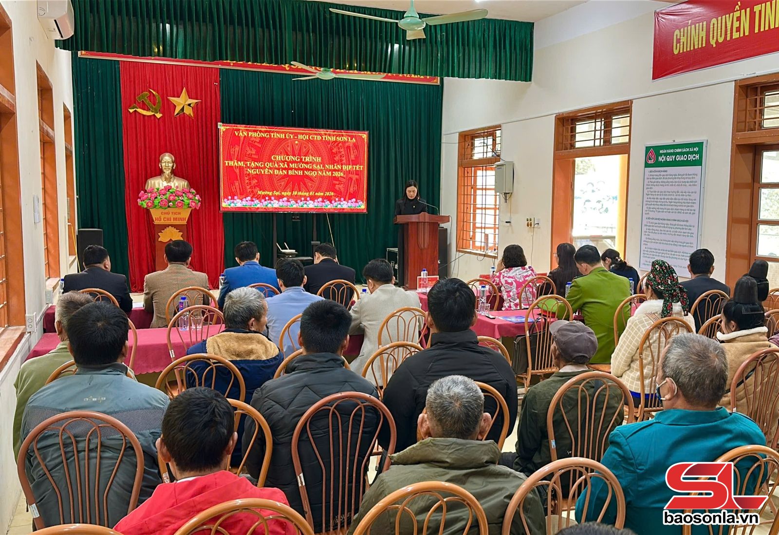 Tại chương trình, Văn phòng Tỉnh ủy đã trao tặng 5 suất quà cho các cơ quan, trường học và trạm y tế xã. Đồng thời, chuyển trao 50 suất quà Tết của Hội Chữ thập đỏ tỉnh tới các hộ nghèo của xã, mỗi suất trị giá 650.000 đồng, gồm bánh kẹo và 500.000 đồng tiền mặt, góp phần động viên người dân có hoàn cảnh khó khăn đón Tết vui tươi, ấm áp.