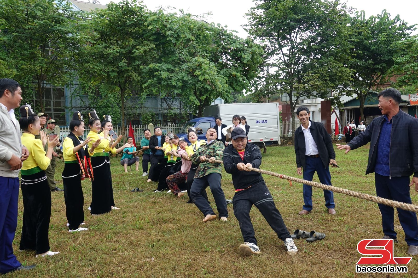 Các vận động viên tham gia môn kéo co.