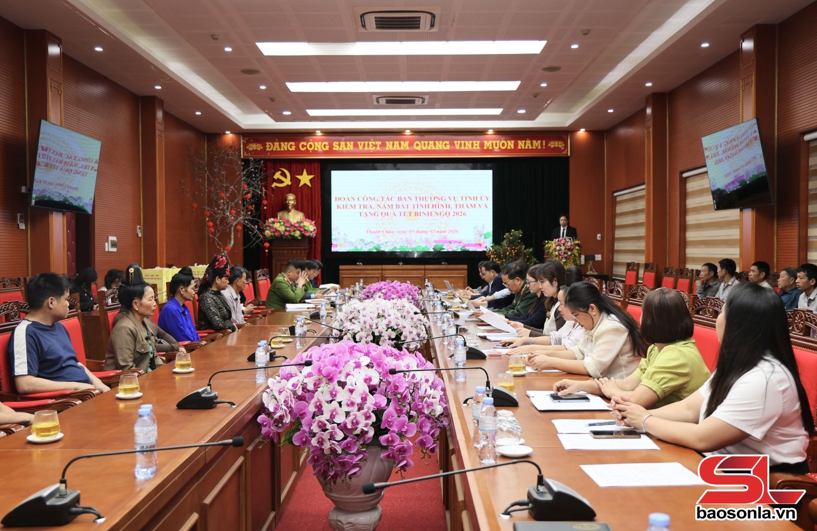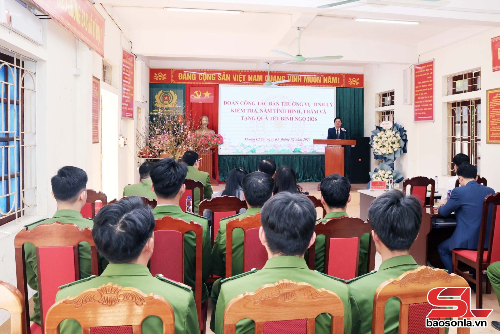 Lãnh đạo xã Thuận Châu và Đội Cảnh sát chữa cháy và cứu nạn, cứu hộ khu vực Thuận Châu đã cáo tình hình phát triển kinh tế - xã hội, quốc phòng, an ninh; bảo đảm an toàn PCCC trên địa bàn và công tác chuẩn bị Tết Nguyên đán Bính Ngọ 2026.
