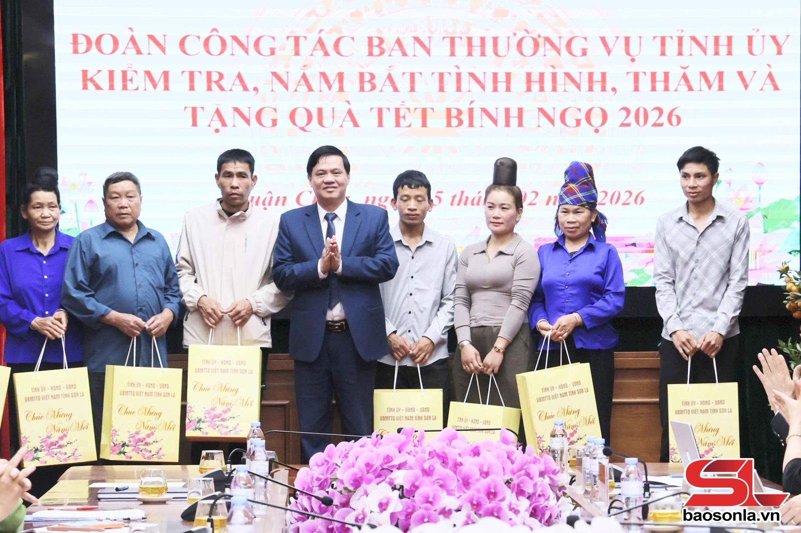 Nhân dịp này, đồng chí Phó Chủ tịch Thường trực Ủy ban MTTQ Việt Nam tỉnh và Đoàn công tác đã trao quà Tết của Tỉnh ủy, HĐND, UBND, UBMTTQ Việt Nam tỉnh cho Đội Cảnh sát chữa cháy và CNCH khu vực Thuận Châu; xã Thuận Châu và 20 hộ nghèo trên địa bàn xã.