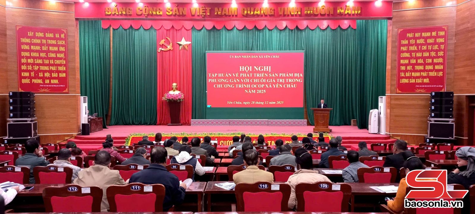 Ngày 28/12, UBND xã Yên Châu tổ chức Hội nghị tập huấn về phát triển sản phẩm địa phương gắn với chuỗi giá trị trong chương trình OCOP xã Yên Châu năm 2025. Tham dự hội nghị có đại diện các hợp tác xã, ban quản lý các bản, tiểu khu và các hộ sản xuất, kinh doanh tiêu biểu trên địa bàn xã.