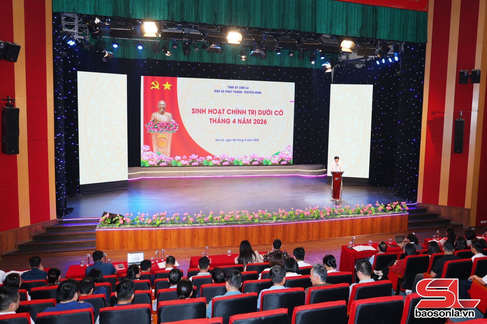 Ngày 6/4, Đảng ủy Báo và Phát thanh, truyền hình Sơn La tổ chức sinh hoạt chính trị dưới cờ tháng 4/2026. Dự sinh hoạt có tập thể cấp ủy, Ban Giám đốc, cùng toàn thể cán bộ, đảng viên, viên chức, người lao động trong đơn vị.