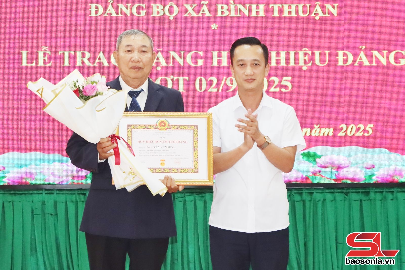 Trong đợt này, Đảng bộ xã Bình Thuận có 15 đảng viên được trao tặng Huy hiệu Đảng, gồm: 1 đảng viên Huy hiệu 55 năm tuổi Đảng; 1 đảng viên Huy hiệu 50 năm tuổi Đảng; 2 đảng viên Huy hiệu 45 năm tuổi Đảng; 2 đảng viên Huy hiệu 40 năm tuổi Đảng; 9 đảng viên Huy hiệu 30 năm tuổi Đảng.