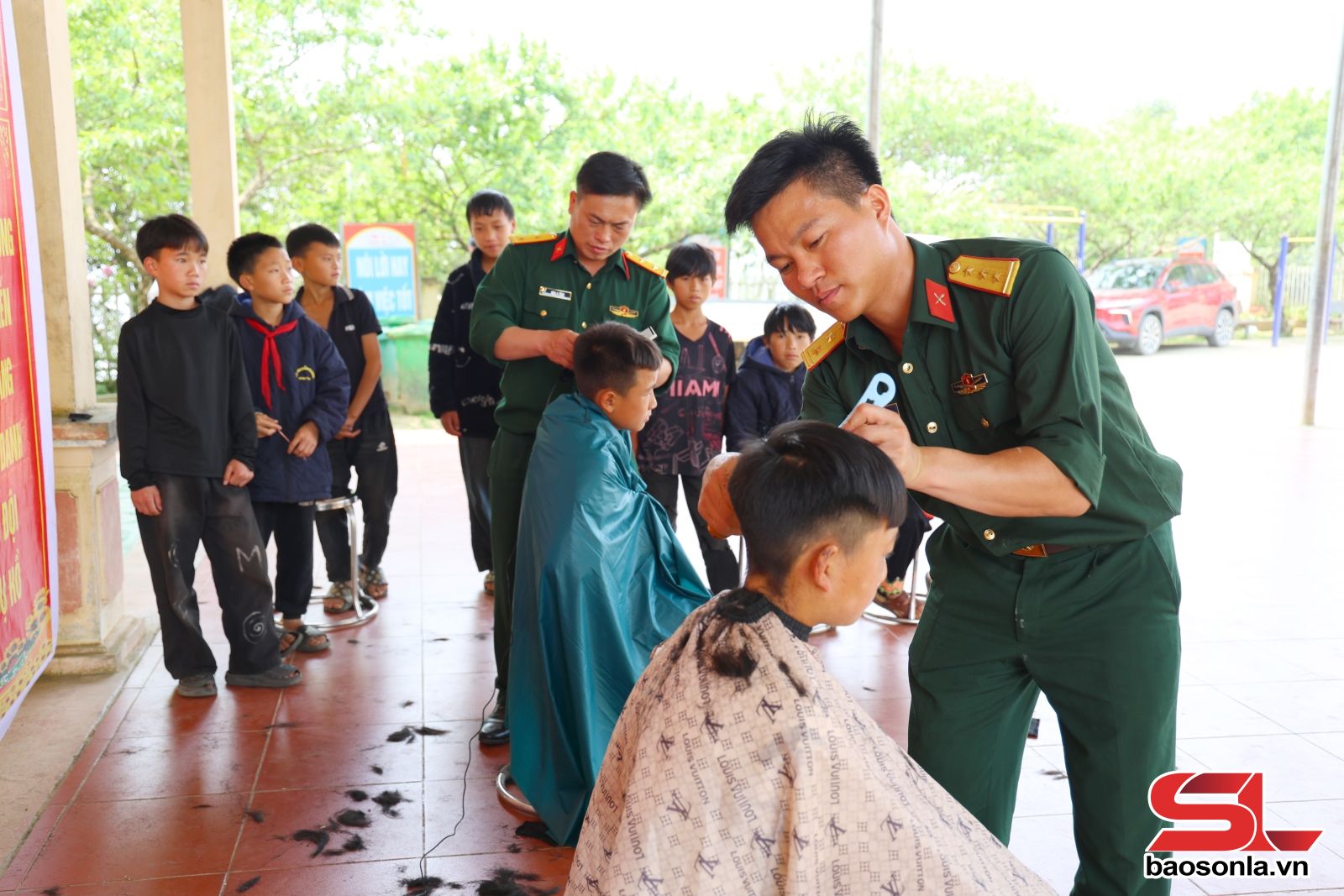 Tại khuôn viên Trường THCS Tà Xùa, hình ảnh những “người thợ” cắt tóc trong bộ quân phục màu xanh cầm kéo, lược đã trở nên thân thuộc. Chỉ với bộ đồ nghề đơn giản, “Tiệm cắt tóc quân nhân” luôn rộn ràng tiếng cười nói. Em Hờ Minh Tuấn, lớp 6A, Trường THCS Tà Xùa, chia sẻ: Mỗi khi được cắt tóc, chúng em cảm thấy rất vui. Các chú bộ đội cắt tóc rất cẩn thận, tỉ mỉ, giúp chúng em có mái tóc gọn gàng, ưng ý. Các chú còn vui vẻ, trò chuyện, hỏi thăm, động viên chúng em học tập tốt.