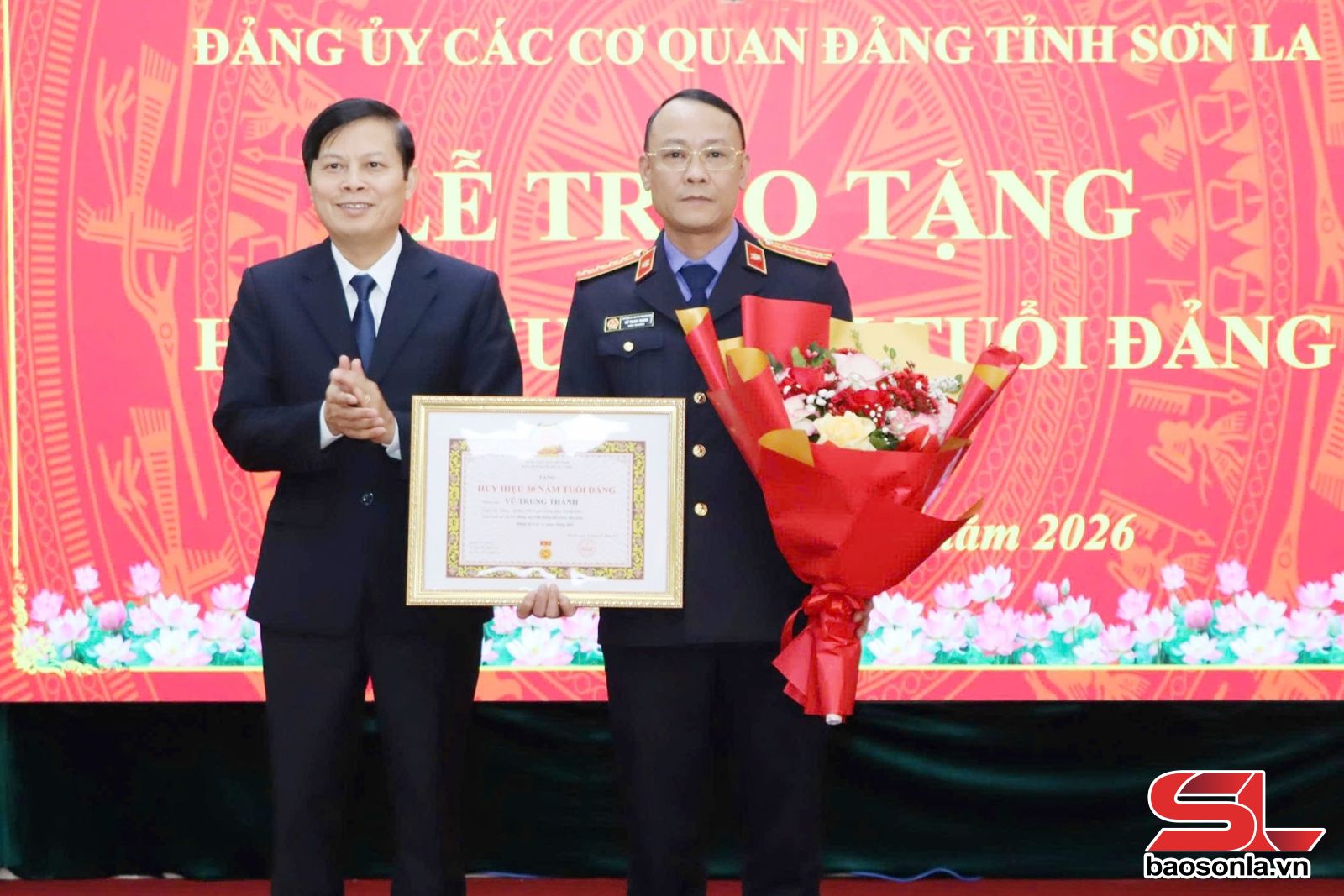 Các đảng viên được trao Huy hiệu 30 năm tuổi Đảng dịp này gồm: Vũ Trung Thành, Bí thư Đảng ủy, Viện trưởng Viện Kiểm sát Nhân dân tỉnh và Hoàng Phúc, Bí thư chi bộ, Trưởng khoa Cơ sở, Đảng bộ Trường Đại học Tây Bắc.
