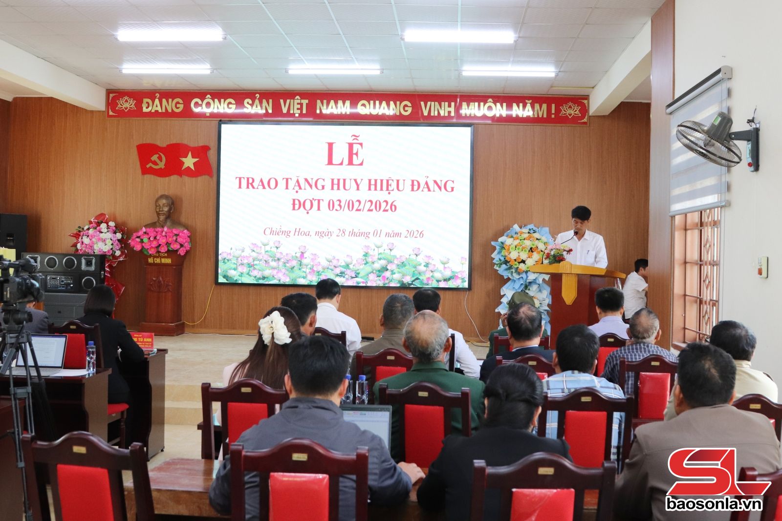 Xã Chiềng Hoa có 11 đảng viên được trao Huy hiệu Đảng. Đồng chí Chủ nhiệm Ủy ban Kiểm tra Tỉnh ủy đã trao Huy hiệu 60 năm tuổi Đảng cho đảng viên Lò Văn Danh, Chi bộ bản Pá Xa Hồng. Lãnh đạo xã đã trao Huy hiệu 45 năm tuổi Đảng cho 4 đảng viên; trao Huy hiệu 40 năm tuổi Đảng cho 1 đảng viên; trao Huy hiệu 30 năm tuổi Đảng cho 5 đảng viên.