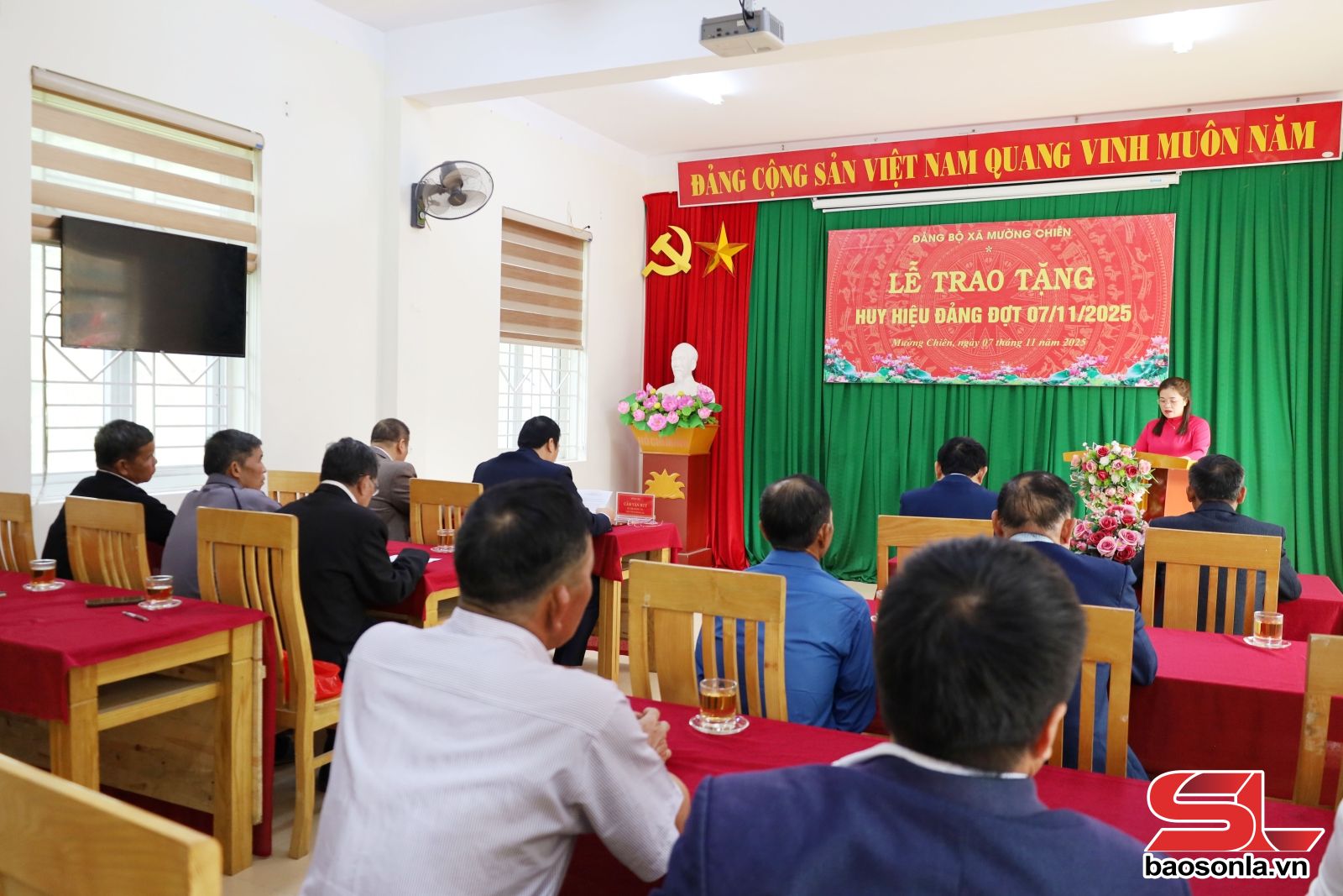 Trong đợt này, Đảng bộ xã Mường Chiên có 7 đảng viên được trao Huy hiệu từ 30 đến 60 năm tuổi Đảng. Trong đó, 1 đảng viên nhận Huy hiệu 60 năm tuổi Đảng; 2 đảng viên nhận Huy hiệu 45 năm tuổi Đảng; 1 đảng viên nhận Huy hiệu 40 năm tuổi Đảng; 3 đảng viên nhận Huy hiệu 30 năm tuổi Đảng.