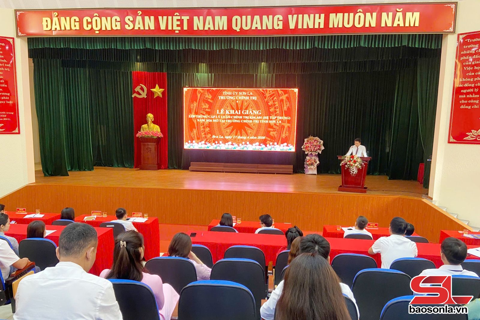 Ngày 17/4, Trường Chính trị tỉnh đã tổ chức khai giảng Lớp Trung cấp lý luận chính trị K64.A01 năm 2026 hệ tập trung. Lớp học có 30 học viên thuộc các sở, ban, ngành, đoàn thể của tỉnh; công chức, viên chức các xã, phường và đơn vị sự nghiệp trên địa bàn tỉnh.